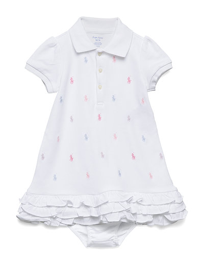 Ruffled Polo Dress & BloomerAn allover pattern of our signature embroidered pony and a ruffled hem bring playful charm to this smooth cotton Polo dress. A matching bloomer completes the set.Dress and bloomer: 100% cotton.Machine washable.A-line silhouette.Size 9 months has a 16" body length.Allover pattern of our signature embroidered pony.