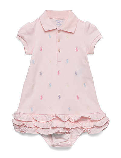 An allover pattern of our signature embroidered pony and a ruffled hem bring playful charm to this smooth cotton Polo dress. A matching bloomer completes the set.Dress and bloomer: 100% cotton.Machine washable.A-line silhouette.