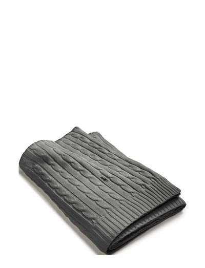 BomuldA soft cable knitted throw with an embroidered Polo logo in one corner, perfect for any room. Available in: several colours Available in two sizes: 127x177cm - Charcoal and Navy, and 130x180cm Off-white Lifestyle images feature Polo Player bed linen