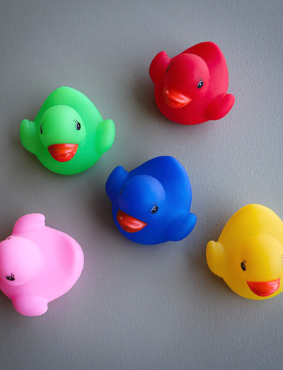 Bring farverige og søde ænder ned i vandet. Farverige badedyr uden huller giver en skimmelfri legeoplevelse. Plasten er fri for skadelige blødgørere og ftalater.