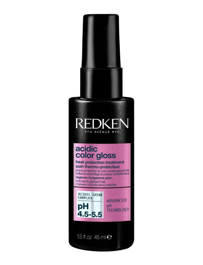 Opnå glans med Acidic Color Gloss Leave-in Treatment Acidic Redken Color Gloss Leave-in Treatment er en leave-in spray, der dækker håret med en beskyttende formel uden at dække glansen. Den pH-balancerede formel giver glathed og er 6x fugtgivende. Den er beriget med Redkens Invisible Shield-teknologi og danner skjold mod skader fra varme. Resultatet? Hår der føles og ser levende, glansfuldt og sundt ud. • 13x glattere hår* • Op til 230°C varmebeskyttelse* • 6x fugtighedsboost *Acidic Color Gloss Leave-in vs ikke-plejende shampoo
