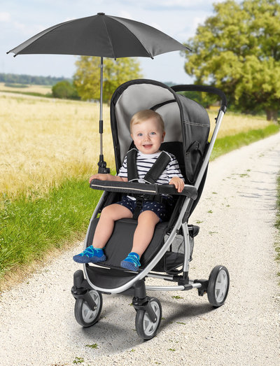 Praktisk solafskærmning. Denne parasol beskytter barnet mod solskodning og giver skygge. Er nem at justere i forhold til solens position. Parasollen er nem og hurtig at påsætte og tage af igen. Alder: +0 mdr. Emballage størrelse: 9,7 x 4,5 x 52,7 cm. Produkt størrelse: Ø 80 x 68 cm høj. Materiale: Polyester. Farve: Sort.