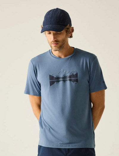Denne bløde T-shirt er skabt til aktive dage og har en behagelig stretch og hurtigtørrende materiale. Den er ideel til vandreture, padling eller bare til at nyde sommeren, da den transporterer fugt væk og giver UPF 50+ beskyttelse. Designet har en smuk bjerg-grafik.