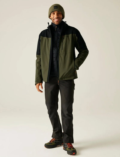 Denne vandtætte og åndbare 3-i-1 jakke er klar til al slags vejr. Isotex Stretch 15000-stoffet giver fleksibilitet og komfort, mens tapede sømme sikrer komplet vandtæt beskyttelse. Den har en lynlås midt foran med drænkanal, en lynlåslomme på brystet og to nederste lynlåslommer. Den faste tekniske hætte har en justerbar ståltrådsskygge, og de justerbare manchetter giver en perfekt pasform. Den lette inderjakke kan tages ud, og den ydre jakke er fremstillet med genanvendt materiale.