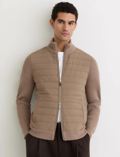 Denne isolerende jakke kombinerer quiltede frontpaneler med bløde ribstrikkede ærmer. Designet har en praktisk funnel neck, sidelommer og en strømlinet dobbelt lynlås foran.