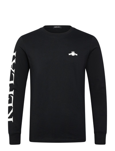 Denne langærmede t-shirt er fremstillet i blød jersey og har en klassisk rund hals og en behagelig, regulær pasform. Ærmerne er prydet med et markant branding, der tilføjer et strejf af underspillet stil til dette alsidige stykke tøj.
