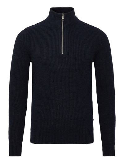 Denne sweater er fremstillet af en blød blanding af lammeuld og viskose, og den giver både komfort og varme. Jerngråmeleret strik med en almindelig pasform og en kvart lynlås i halsen, hvilket gør den til en alsidig tilføjelse til enhver garderobe.