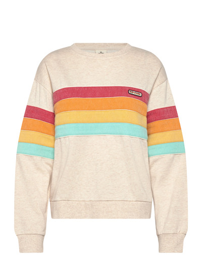 Denne sweatshirt med rund hals har en afslappet pasform og tilbyder både komfort og stil. Designet har iøjnefaldende vandrette striber hen over brystet og armene, hvilket tilføjer et legende præg til den klassiske silhuet.