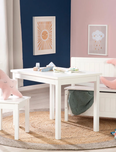 Børnestolen i træ i cremehvid lakeret børnestol med fræsede kanter. HxBxD: 59x29x29cm. Med en sædehøjde på 31 cm (lidt højere end konventionelle småbørnsstole), et behageligt ryglæn og et stort ståområde er stolen ideel til børn mellem 2-10 år (op til ca. 50 kg). Børnestolen kan suppleres til en siddegruppe med det praktiske børnebord og den matchende, rummelige børnekistebænk. Og så kan man begynde at lege, spise, lave håndarbejde, male eller skrive. Barnestolen leveres adskilt. Det er en leg at samle den. Alle anvendte materialer er testet for skadelige stoffer og certificeret. Desuden kontrolleres de regelmæssigt under produktionen. Alle overflader kan tørres af og er nemme at rengøre.