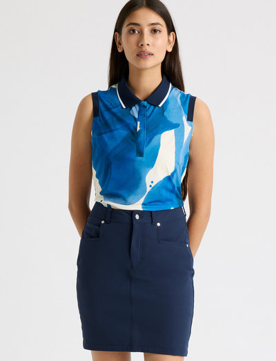 HurtigttørrendeDenne ærmeløse polo er fremstillet af genanvendt polyester og giver både ydeevne og et bevidst valg. Den har hurtigtørrende og fugttransporterende egenskaber, der sikrer komfort under aktive udfoldelser. Designet har en skjult stolpelukning med trykknapper, hvilket giver et elegant og moderne look.