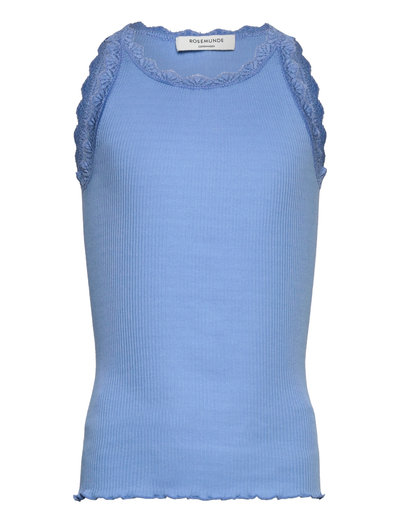 Denne ærmeløse top er et stilfuldt og komfortabelt valg til enhver lejlighed. Den har en fin blondekant omkring halsudskæringen og en ribbet struktur for et klassisk look.