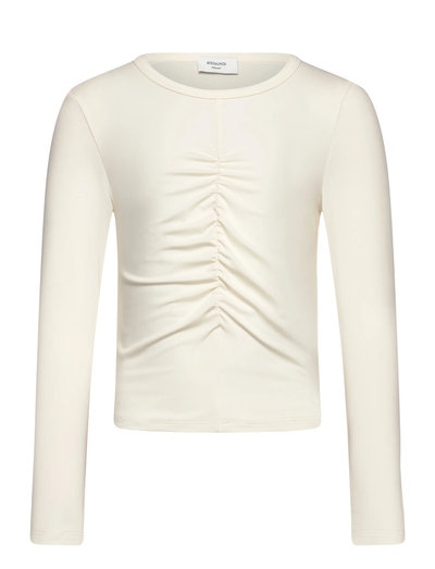 Subtile rynker foran tilføjer et strejf af tekstur til denne langærmede T-shirt. Det bløde materiale og det klassiske snit gør den til en alsidig tilføjelse til enhver garderobe.