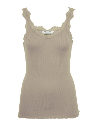 Delikat blondekant fremhæver denne ribbede top og tilføjer et strejf af elegance til en klassisk silhuet. Det økologiske stof sikrer en blød fornemmelse mod huden, hvilket gør den ideel som et basislag eller alene.