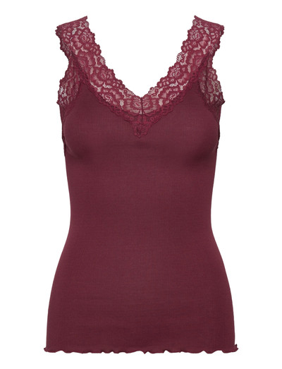 Delikat blondekant tilføjer et elegant touch til denne økologiske bomuldstop. V-halsdesignet og den ærmeløse udskæring gør den til et alsidigt stykke tøj, der kan bruges alene eller som et lag.