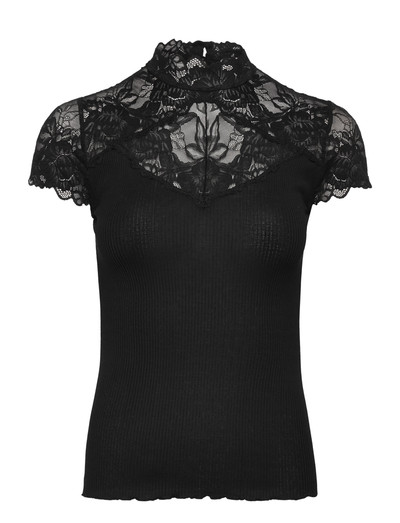 Delikate blonde detaljer løfter denne kortærmede top. Designet har en høj halsudskæring og en formtilpasset silhuet.