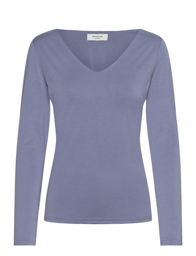 Denne langærmede top er fremstillet af blød modal og giver en behagelig og flatterende pasform. V-halsen tilføjer et strejf af elegance, hvilket gør den perfekt til lagdeling eller til at bære alene.