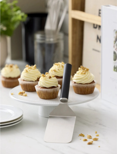 Den brede palet er alsidig og brugervenlig. Hvad enten du løfter småkager fra bagepladen eller vender bøffer på panden, glider det fleksible blad nemt ind under maden. Paletten med det ergonomiske håndtag kan bruges til mange forskellige opgaver ved madlavning og bagning og er et musthave for enhver madentusiast. Velegnet til opvaskemaskine.