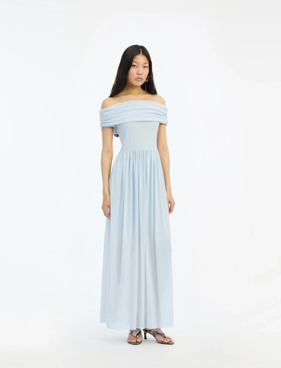 Denne maxikjole har en flydende silhuet og et elegant off-shoulder-design. Det rynkede liv giver et strejf af tekstur, mens den lange, yndefulde nederdel sikrer en flatterende pasform. Perfekt til særlige lejligheder eller et elegant hverdagslook.