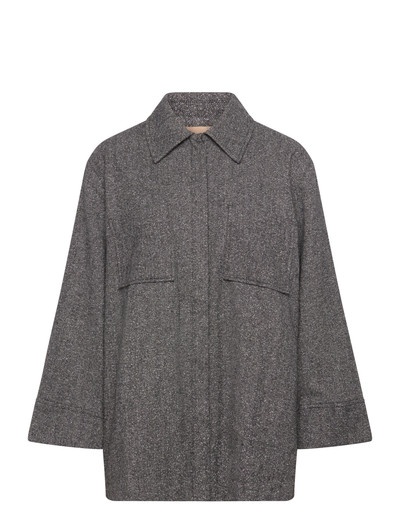 Regular fitDenne overshirt er fremstillet i en tekstureret bouclé og giver en unik blanding af komfort og stil. Den skjulte knaplukning sikrer en strømlinet silhuet, der suppleres af mørke hornknapper. Brystlommerne foran fremhæver både design og praktisk anvendelighed, mens høje sideslidser med skjulte knapper tilføjer et karakteristisk præg. En almindelig krave og fuld foring fuldender dette alsidige stykke.