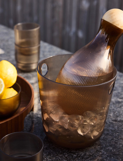 Billi carafe has a timeless design with character. With a functional form and bamboo stopper, this carafe is a natural choice for both everyday use and festive occasions. Made from recycled plastic. Billi is available in several colours & variations. Dimensions: ø12x22,.5 cm. Volume: 1.4 litres. Design Studio Sagaform. Hand wash recommended. Food safe.