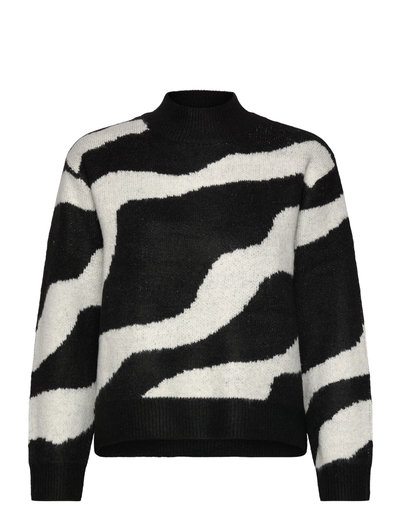 Denne pullover har et markant, bølget mønster, der tilføjer et visuelt interessant element til ethvert outfit. Den høje hals giver ekstra varme og en moderne silhuet, hvilket gør den alsidig til lagdeling eller brug alene.