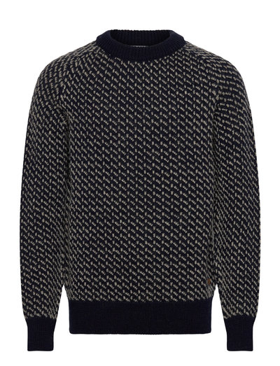 Denne sweater med rund hals er fremstillet af 100% ren ny uld fra Storbritannien og giver enestående varme og komfort. Et tidløst strikmønster og ribdetaljer ved kraven og kanten fuldender looket. Afsluttes med et diskret metallogo.