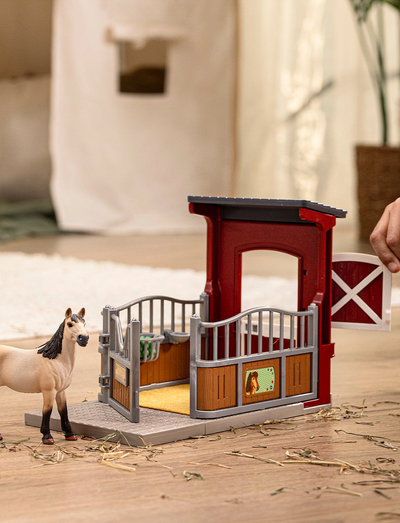 Ponyboksen giver schleich®-mustanghoppen et hyggeligt hvilested efter en anstrengende dag!
