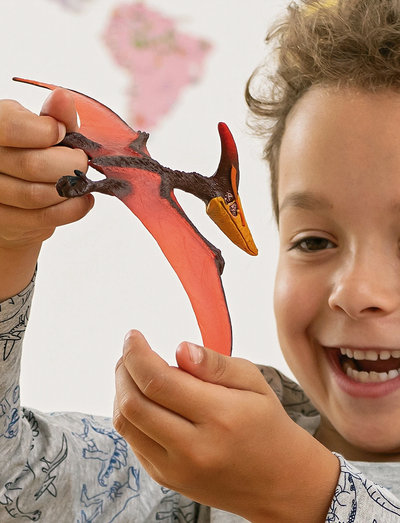 Pteranodon var en af kridttidens største flyveøgler. man tror, at den iøjnefaldende benkam på dens baghoved har modvirket vægten af det lange næb. den slog sandsynligvis ikke ret hyppigt med vingerne, men gjorde brug af luftstrømningerne, så den sejlede gennem luften ligesom en albatros.