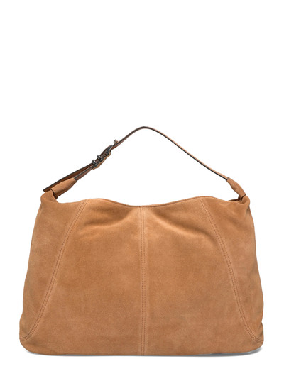 Denne skuldertaske er fremstillet af ruskind, der er certificeret af Leather Working Group, og giver en luksuriøs fornemmelse. Designet har en opdelt inderlomme og en lynlåslomme, der suppleres af en fuld polyesterforing. Den lukkes med en magnetisk lukning og har skinnende, nikkelfarvet hardware. Den justerbare skulderrem er afsluttet med et præget logo på spidsen.