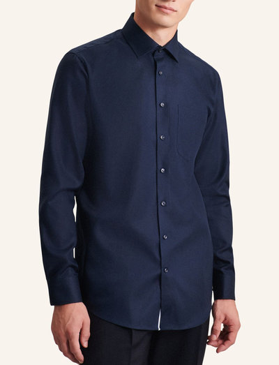 Denne klassiske skjorte med lange ærmer er et alsidigt stykke tøj til enhver garderobe. Den har en knappet krave, en brystlomme og en slank pasform. Skjorten er lavet af materialer af høj kvalitet og er designet til komfort og stil.