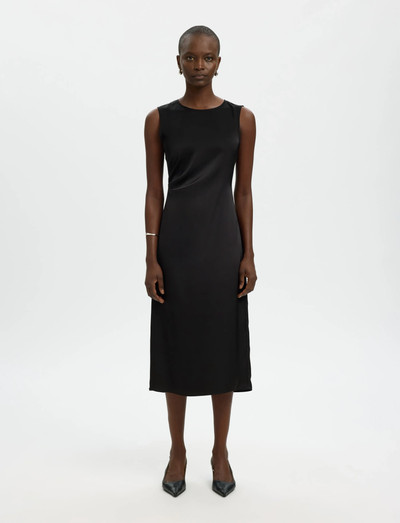 Denne midikjole er skabt i en flatterende, slank pasform og har en klassisk O-hals og en skjult lynlåslukning bagpå. De rynkede detaljer tilføjer et strejf af subtil tekstur til dette ærmeløse design.