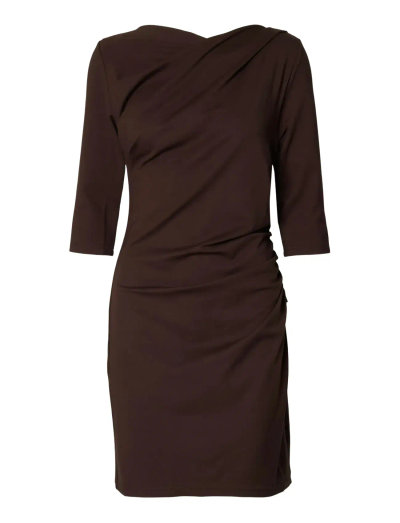 Med en flatterende rund halsudskæring og trekvartærmer giver denne kjole en klassisk silhuet. Den almindelige pasform sikrer komfort og bevægelsesfrihed, hvilket gør den til en alsidig tilføjelse til enhver garderobe.