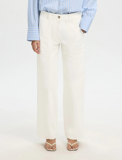 Disse bukser har en flatterende silhuet med brede ben, der giver både stil og komfort. De er udstyret med side- og baglommer samt en sikker knap- og lynlåslukning.