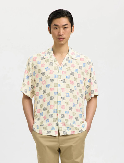 Denne resortskjorte er fremstillet af førsteklasses materialer og er en alsidig tilføjelse til enhver moderne mands garderobe. Den har korte ærmer og en afslappet pasform, lukkes med knapper og er afsluttet med et all-over print. Perfekt til smarte, afslappede lejligheder.