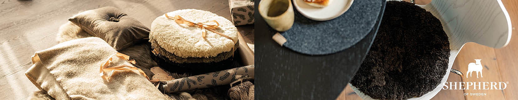 Shepherd Home er berømt for deres udsøgte produkter fremstillet af ægte fåreskind og uld. Læderets enestående struktur og tekstur betyder, at hvert enkelt produkt ikke bare er naturligt, men også helt unikt. Fåreskind er naturligt antibakterielt og modstandsdygtigt over for snavs, hvilket gør det til et særdeles eftertragtet materiale. Når det jævnligt luftes ud i fugtige omgivelser, forbliver fåreskindet friskt og rent uden behov for vask. Disse kvaliteter – sammen med andre, som få materialer kan leve op til – er årsagen til, at Shepherd Home har valgt at specialisere sig i disse fremragende materialer. Inspireret af det traditionelle skandinaviske håndværk, skaber Shepherd Home deres produkter med henblik på slidstyrke, komfort og et tidløst design.