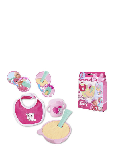 Magic food set from New Born Baby with plate with mush, magic spoon, learning to drink cup and bib. Fits all dolls between 30-43cm. From 2 years.