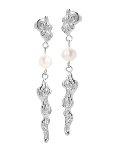 Disse øreringe tilbyder et moderne twist på klassisk elegance med en bølget overflade og ægte ferskvandsperler. Let og legende udstråler de dansk design, hvilket gør dem ideelle til både hverdagsbrug og særlige lejligheder.