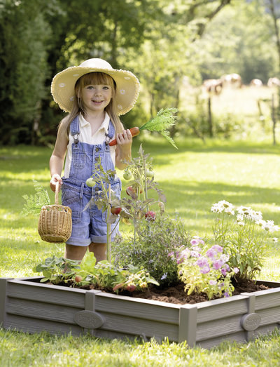 Smobys Square Garden Sandpit is 76x76cm 2in1: it can be used as a sandpit (capacity: 75kg of sand, max 110kg) but also as a vegetable garden (capacity: 60L of soil, max 70L). It can be placed wherever we want. It well fits with Smoby playhouses. Recycled and recyclable plastic.