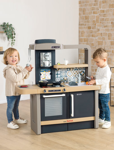 The Tefal Evolutive kitchen is the kitchen that grows with your child thanks to its removable baseboards that can be fixed on the sides of the structure and increase the height of the countertop by 8 cm ensuring a perfect ergonomics playing experience from 3 years (without baseboards) to 8 years (with baseboards).