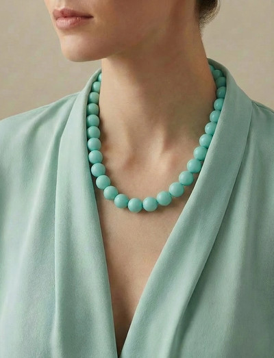 Denne halskæde har en række af perfekt sfæriske perler, der giver et strømlinet og sofistikeret look. Det afbalancerede design fremhæver halsudskæringen og passer smukt sammen med andre accessories.