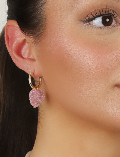 Disse legende hoops har en sukkeragtig tekstur og er udsmykket med krystalaccenter. Konstruktionen i 14k guldbelagt messing suppleres af et charmerende vedhæng med et resin hjerte. En sjov og farverig tilføjelse til ethvert outfit.