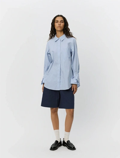 Stribede detaljer løfter denne klassiske skjorte. Med en frontlomme med diskret logo broderi, har designet en skjult knaplukning og et rygstykke med dyb plissé for ekstra komfort. De lange ærmer er afsluttet med unikke detaljer forneden.