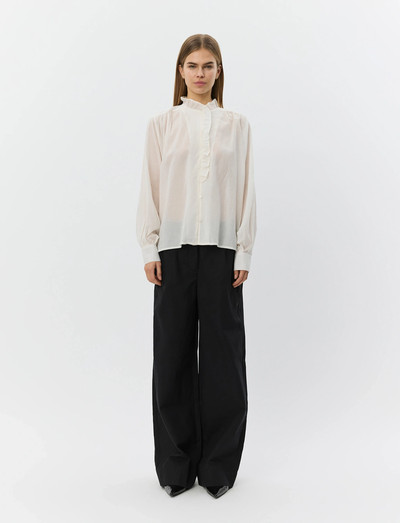 Denne langærmede skjorte har en flæsebesat stolpelukning, der giver et elegant udtryk. Designet har en raffineret silhuet, hvilket gør den velegnet til forskellige lejligheder.