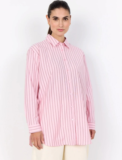 Denne langærmede skjorte er fremstillet af en blanding af genanvendt polyester og økologisk bomuld, og har en knaplukning foran og en klassisk krave. Den længere længde gør den ideel til at kombinere med jeans eller skræddersyede bukser.