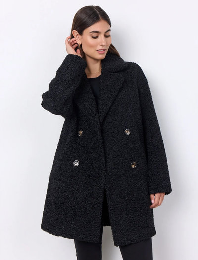 Denne jakke er fremstillet af blødt teddymateriale og giver et varmt og stilfuldt lag. Den har en klassisk reverskrave, knaplukning og praktiske lommer, hvilket gør den til et elegant og funktionelt valg til de køligere dage.
