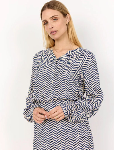 SC-SELIA 2 Blouse is crafted from 100% LENZING™ ECOVERO™ Viscose. It features a round neckline, button closure, and is adorned with a geometric print. Pair it with tailored trousers or denim for a smart look.