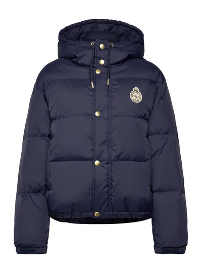 Hold dig varm og stilfuld i denne hætteforede dunjakke. Den har et klassisk pufferdesign, knaplukning foran og en broderet logo-detalje. Hætten giver ekstra beskyttelse mod elementerne.