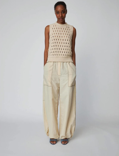 Denne vest har et luftigt, hæklet design og giver et stilfuldt og åndbart lag. Den er afsluttet med en tætsiddende ribkant ved halsudskæringen, ærmegabene og bunden, hvilket giver et raffineret look. Fremstillet i Bulgarien.
