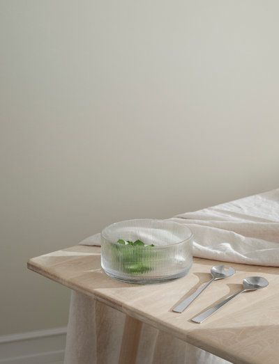 Pilastro serveringsskål til salater, frugt eller som dekorativ skål på køkken- eller spisebord. Formsproget taler ind i de fleste moderne boligers indretning, og passer godt til de fleste spisestel. Pilastro-serien er inspireret af 1920’ernes elegante og funktionelle Art déco-stil. Du kan vælge at fuldende det riflede glasudtryk til borddækningen ved at mikse serveringsskålen med resten af Pilastro-serien. Serveringsskålen kan stables.