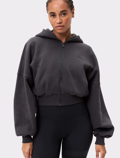 Denne cropped hættetrøje har en afslappet pasform, hvilket gør den ideel til at have over træningstøj eller hverdagsoutfit. Designet med fuld lynlås gør den nem at tage af og på, mens de lange ærmer giver ekstra dækning. Det er en behagelig og alsidig tilføjelse til din garderobe.